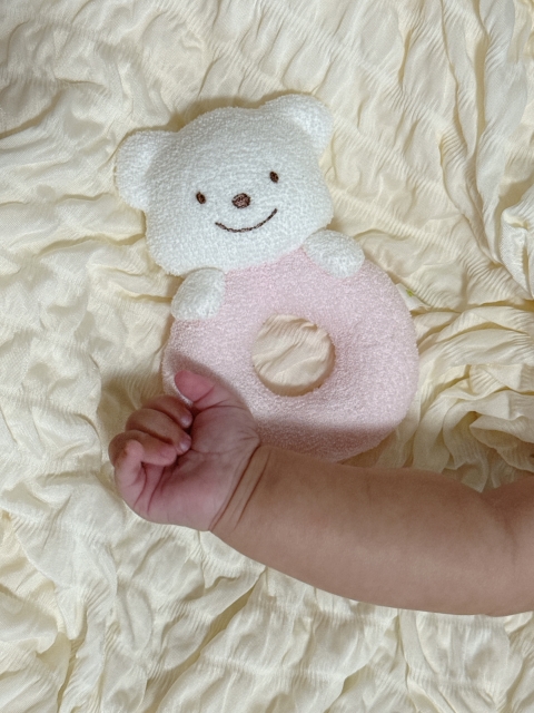 おむつ替え後や寝る前など、カラカラ鳴らしてあやしたいときに大活躍。